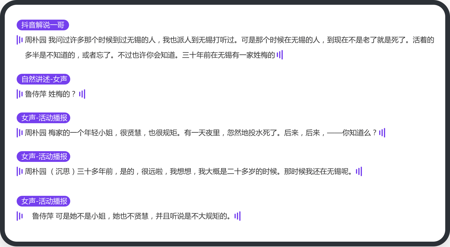 店里經(jīng)常會(huì)做一些促銷廣告需要配音,之前一直是找真人配音,配音時(shí)間長價(jià)格也貴,經(jīng)銷商給我推薦的牛片配音,聲音真的超級(jí)真實(shí),完全聽不出來是機(jī)器合成,關(guān)鍵是機(jī)器不滿意還能選擇真人免費(fèi)試音。